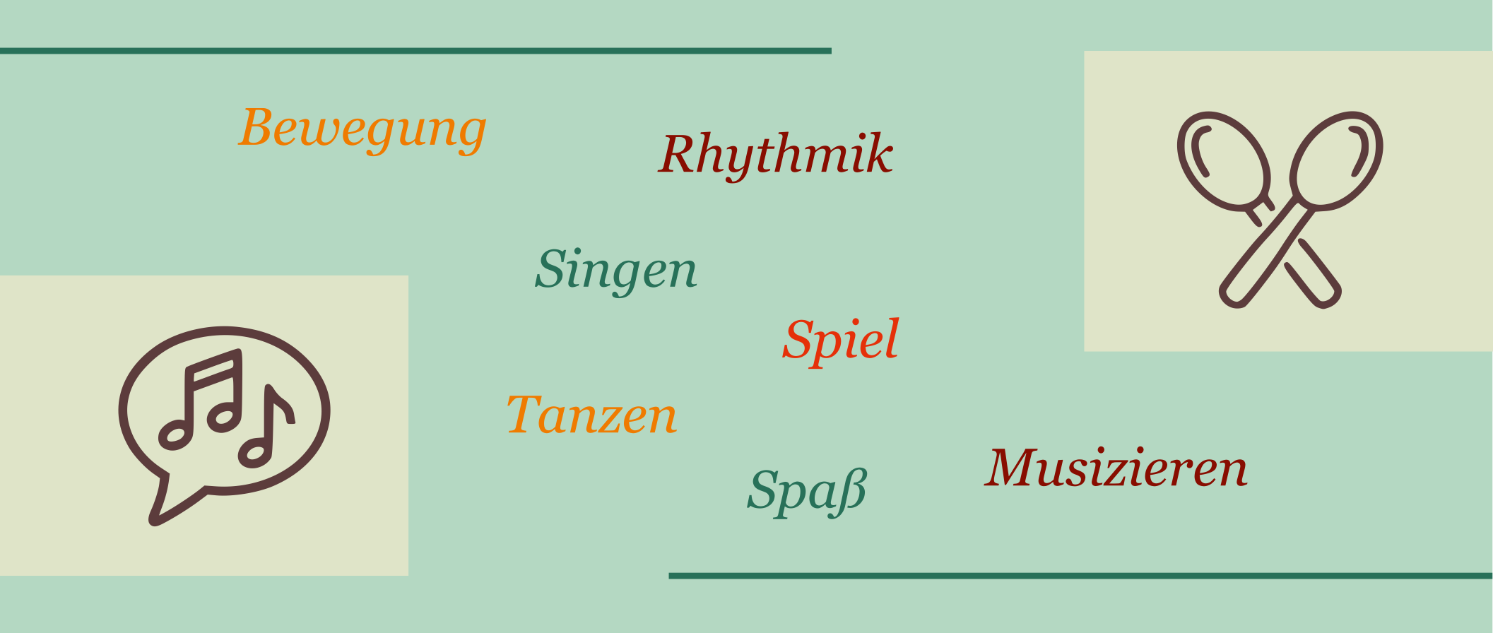 "Wir singen Lieder, musizieren mit unseren Körperklängen (Stimme, Hände, Füße) und spielen mit elementaren Instrumenten (Klanghölzer, Rasseln, Trommeln etc.). Zusammen erleben wir Klanggeschichten und verbinden spielerisch Bewegung, Sprache und Rhythmik."